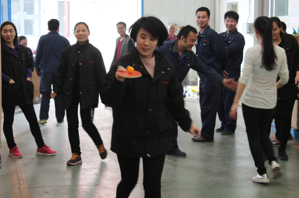 或在早晨的微涼春風(fēng)之中,或在中午烈日驕陽之下,或在夕陽霞光的照耀下,在普康公司寬闊的跑道上,隨處可見奔跑、跳躍的身影;車間通道上,有人在一遍一遍的運球跑動;在廠房旁,毽子像蝴蝶一樣在上下飛舞;在辦公樓旁,有人在齊心協(xié)力的喊著一二;在主席臺前,是富有節(jié)奏的長繩落地之聲。