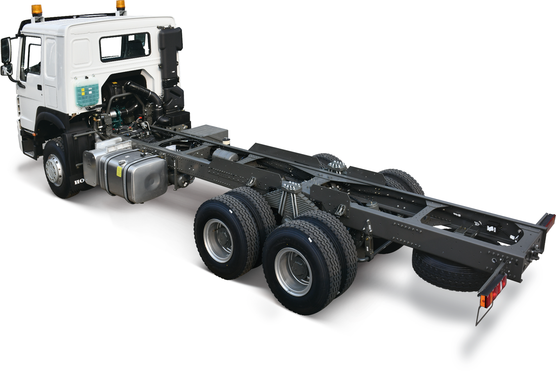 HOWO-7車架和底盤采用高強度鋼材制造,具有極高的抗扭剛性和耐久性,能夠承受長時間的重載運輸任務。